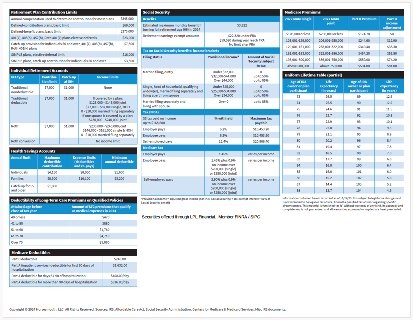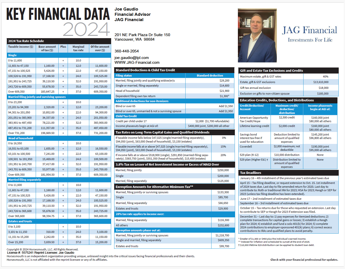 Here are some Key Financial Data that will be very useful this time of year. To download a copy for yourself, click here.